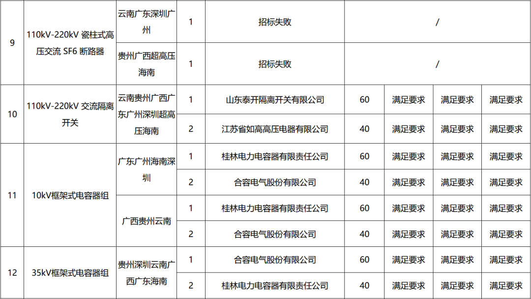 南方电网公司2022年主网一次设备(深圳110kV主变、深圳110kV组合电器)结构化评标专项招标项目(招标编号:CG0000022001542750),经评标委员会评审,现将中标候选人公示如下: