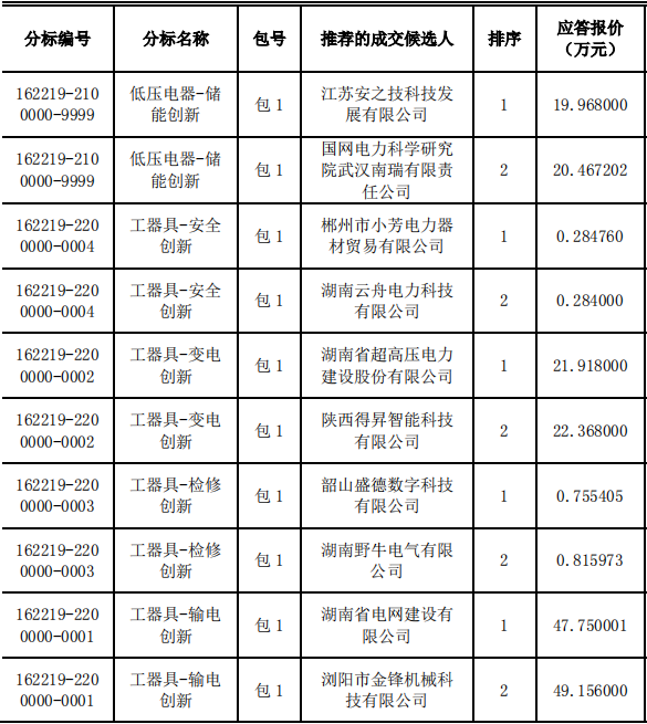 国网湖南省电力有限公司2022年第五次物资集中招标采购推荐的中标候选人公示