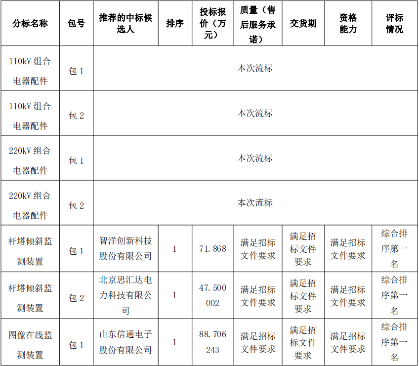 国网上海市电力公司2022年第六次物资招标采购推荐的中标候选人公示