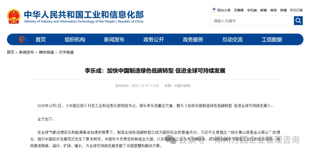 近日,工业和信息化部党组书记、部长李乐成在署名文章中明确指出,要将绿色低碳作为新型工业化的生态底色,中国构建了以绿色工厂、绿色工业园区、绿色供应链和绿色产品为关键载体的绿色制造体系,将绿色发展理念融入工业生产全过程。而绿色工厂作为绿色制造体系的关键抓手,已成为企业实现低碳转型、抢占市场先机的重要途径。
