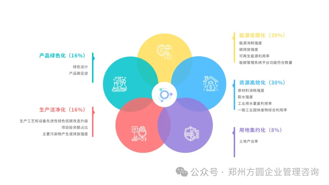 根据《绿色工厂梯度培育及管理暂行办法》,企业申报绿色工厂需满足基础条件,并在五大维度达标,以下是核心筹备方向: